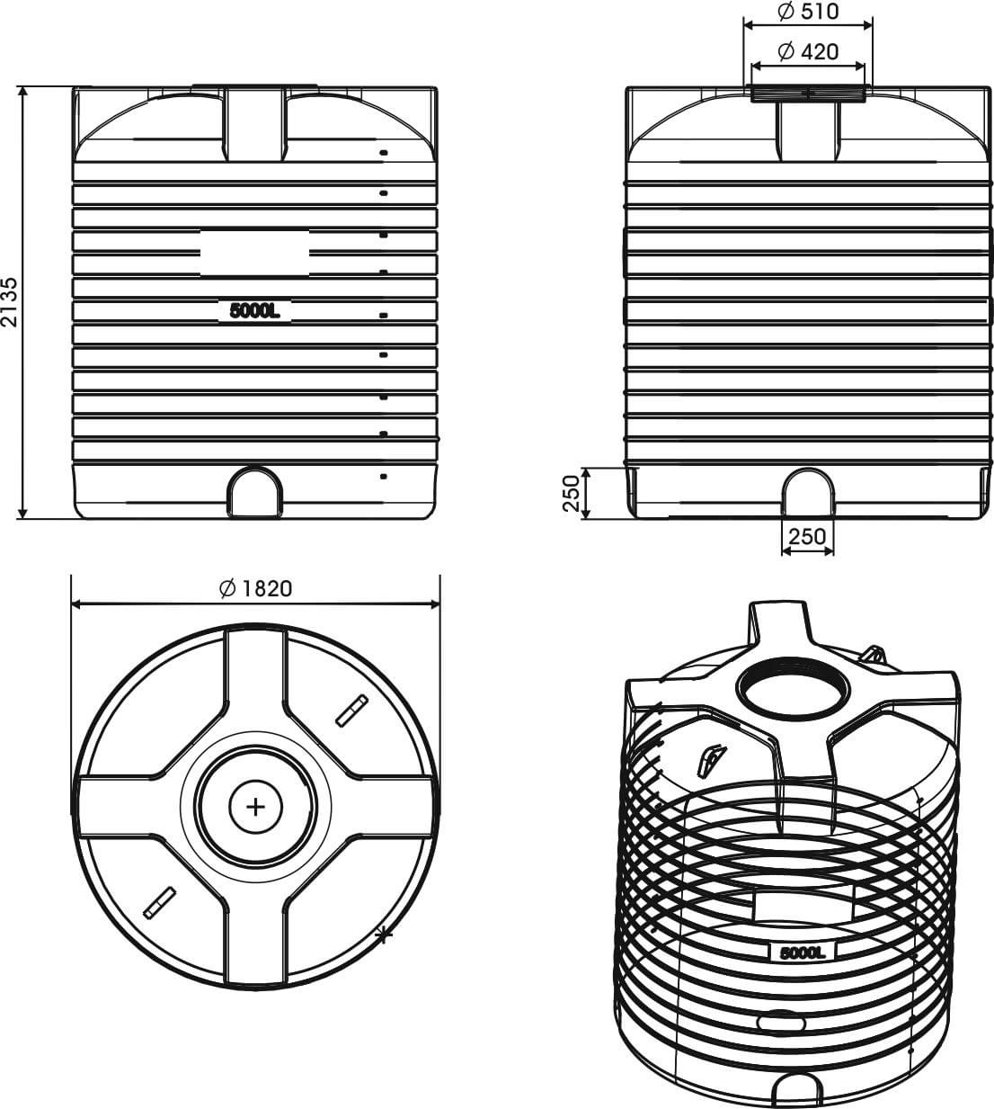 Бак 5000л комплектуется крышкой, оснащенной отверстием под дыхательный клапан, в зависимости от потребностей клиента.