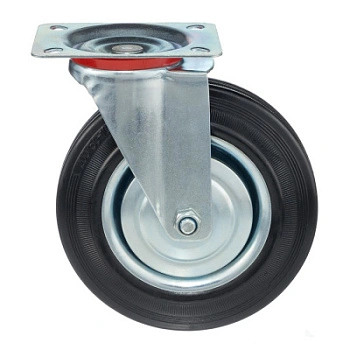 Колесо поворотное 4001-200, диаметр 200мм., грузоподъемность 185 кг. Колеса из черной литой резины, центр из двух гальванизированных дисков из штампованной стали. Роликовый (игольчатый) подшипник расположен в углублении, выдавленном под прессом, и содержит цилиндрические ролики подшипника. Кронштейн изготовлен прессованием из листовой стали. В поворотном узле двухрядный шарикоподшипник. Возможно применение на относительно грубых полах складов, заводов, производственных и строительных площадках. Данные колеса можно использовать на неровных поверхностях, во влажной окружающей среде и использовании вне помещения, не рекомендуется применять в среде с органическими растворителями, хлорированными веществами, гидрокарбонатами и минеральными маслами. Температура эксплуатации от -20 до +70С.