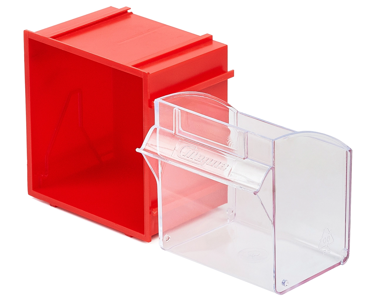 Комплект из 5-ти коробов откидных Стелла-техник F-105-1 (105х87х112мм.), красный, прозрачный служит для хранения мелкоштучных предметов. Данные короба с помощью специальных пазов соединяются друг с другом по всем четырем сторонам, благодаря чему, пользователь может выстроить систему хранения по желаемым ему габаритным размерам. Внутренние ячейки короба не подвержены случайному опрокидыванию. Откидная ячейка обеспечивают быстрый доступ к необходимым предметам. В случае необходимости полного высыпания или наполнения внутренние ячейки легко извлекается. Полезный внутренний размер ячеек 88х65х70мм. Специальный пластик, из которого выполнен короб, выдерживает значительные нагрузки и обладает оптимальной эластичностью. На задней стенке короба присутствуют отверстия для крепления, через которые можно легко прикрепить к стене, как отдельно каждый, так и целый собранный набор из коробов, любого количества. Обзорность содержимого сквозь прозрачные внутренние ячейки, наличие отсека для информационных бирок, легкое извлечение внутреннего короба для опустошения и наполнения, все это является неоспоримым преимуществом откидных коробов серии F. Температура эксплуатации от -10 до +70С.