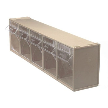 Короб откидной F-600-5-B, 600х140х168 мм 5 ячеек, бежевый / прозрачный, служит для хранения мелкоштучных предметов. Данная система хранения не подвержена случайному опрокидыванию. Откидные ячейки обеспечивают быстрый доступ к необходимым предметам. В случае необходимости полного высыпания или наполнения короб легко извлекается. Полезный внутренний размер каждой ячейки 108х98х107мм.