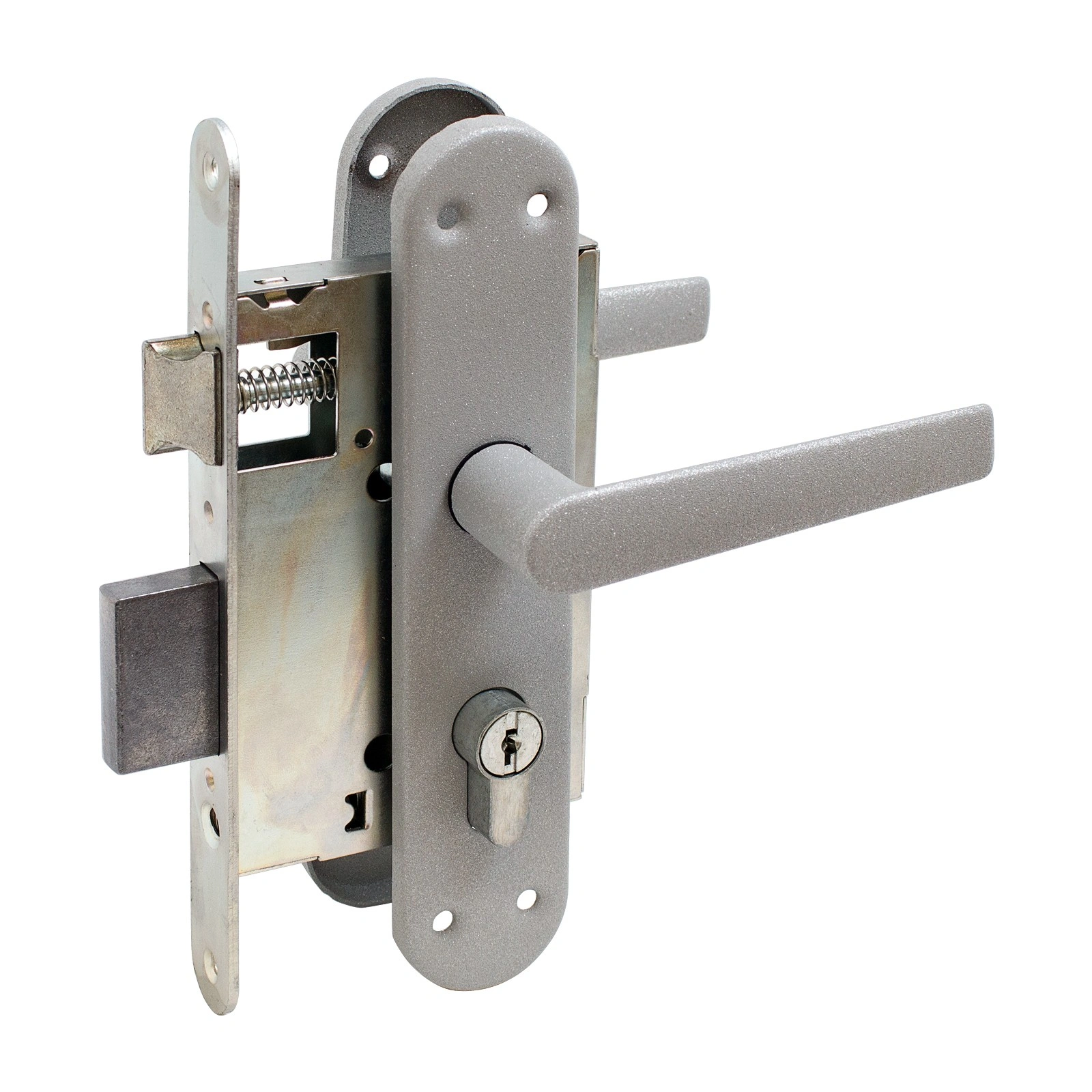 Предназначен для установки в деревянные двери толщиной 40-50мм, правого и левого открывания. Крепление ручек - шурупами.