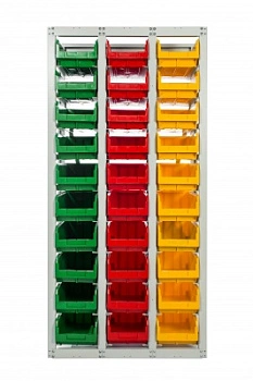 Данная модель стеллажа предназначена для средних размеров контейнеров модели V -3 и способна брать на себя достаточно большие нагрузки до 400 кг распределенной нагрузки на секцию. Стеллаж вмещает в себя 10 ящиков по высоте. Количество по ширине определяется количеством дополнительных наращиваемых секций.
