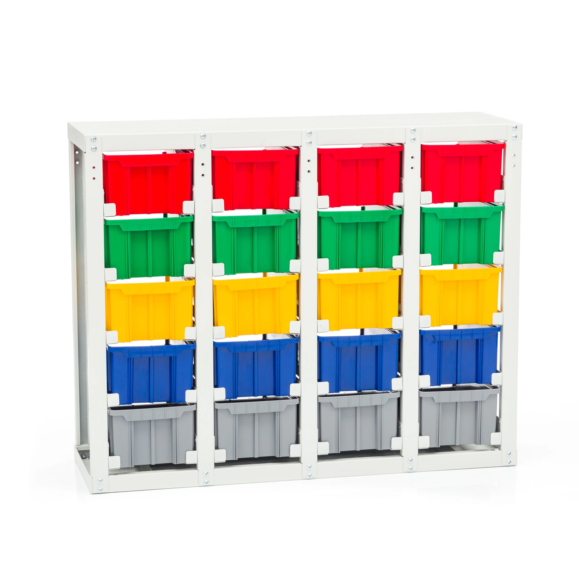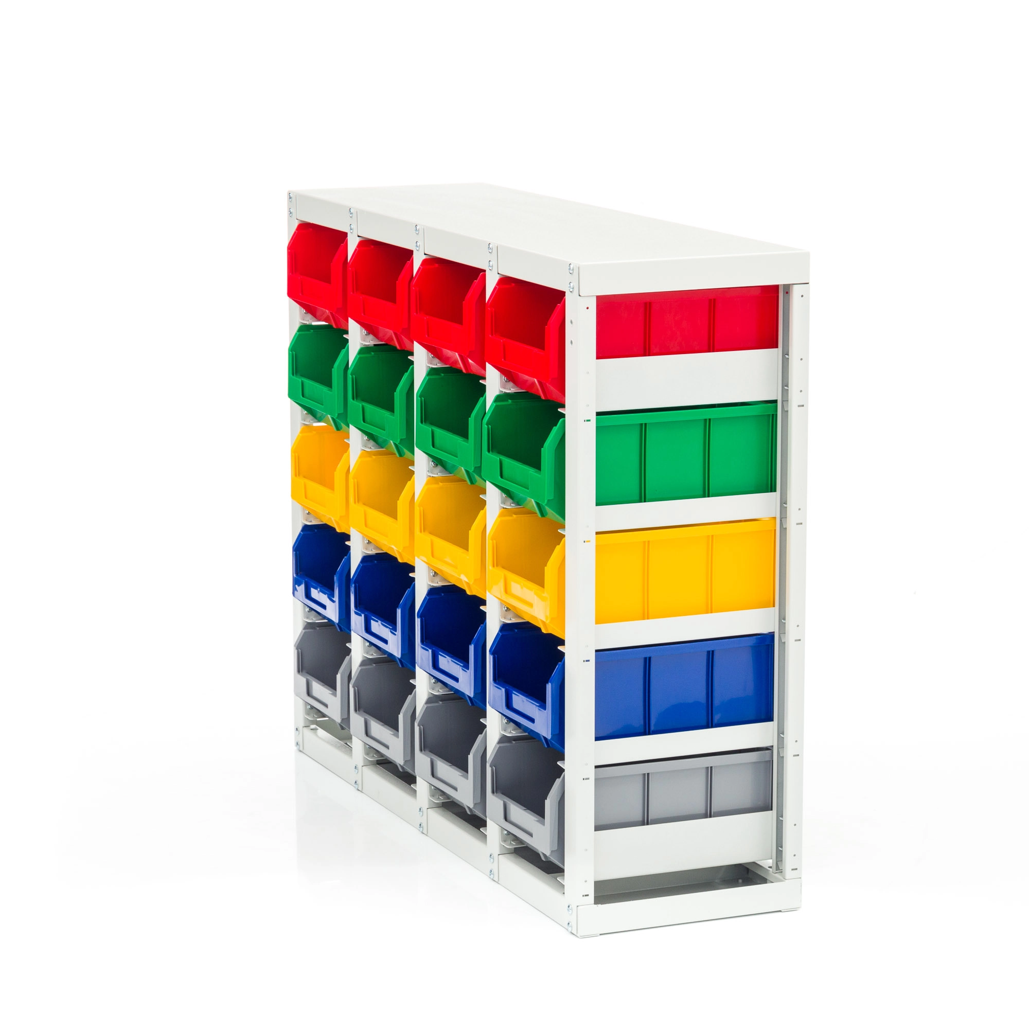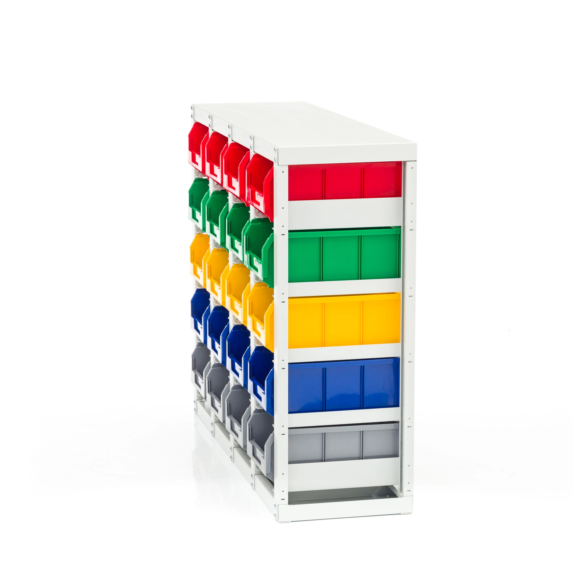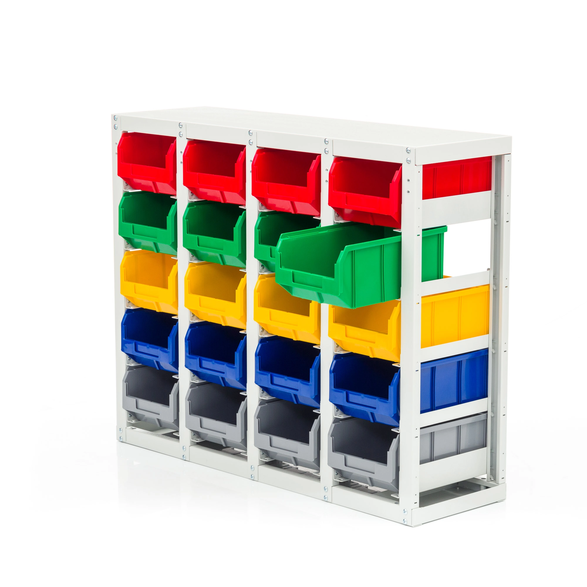 Стеллаж с направляющими односторонний V3-20 ячеек, грузоподъемность 400кг., предназначен для размещения контейнеров V-3 в отдельных ячейках на продольных направляющих. Подходит для эксплуатации в автомастерских, в строительных магазинах, на складах, где необходимо складирование мелкоштучных изделий и инструментов. Конструкция ящиков модели V3 обеспечивает быстрый и легкий доступ. Ящики открытого типа позволяют быстро находить нужные позиции, это возможно благодаря хорошему визуальному обзору содержимого. Конструкция стеллажа позволяет одним движением руки извлекать нужный ящик для его наполнения или опустошения, и так же легко устанавливать его на место. Стеллаж поставляется в разобранном виде и состоит из: металлического каркаса стеллажа с направляющими одностороннего V3-20 ячеек, ящиков пластиковых модель V-3 - 20 шт. Температурный режим эксплуатации от +20 до +70С.