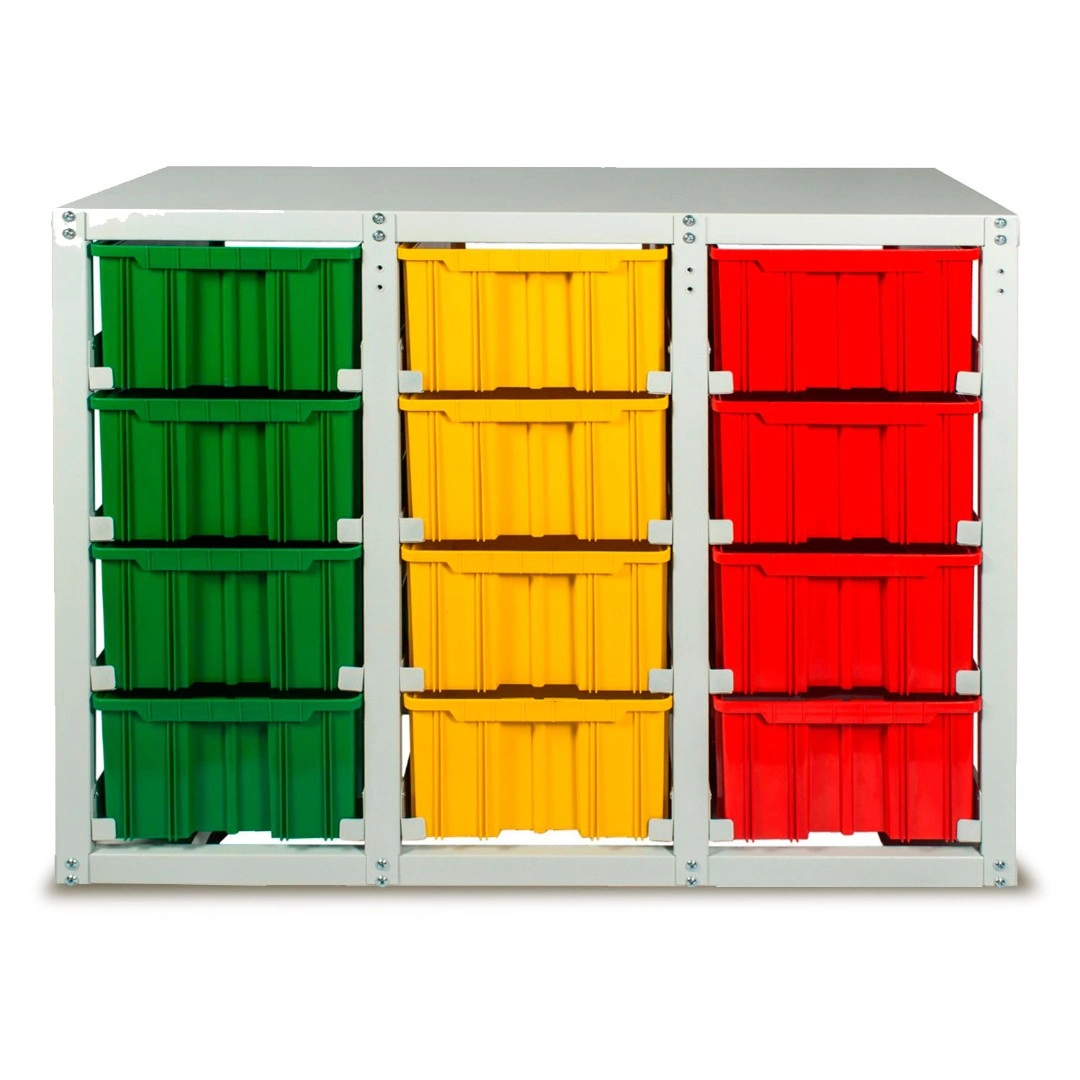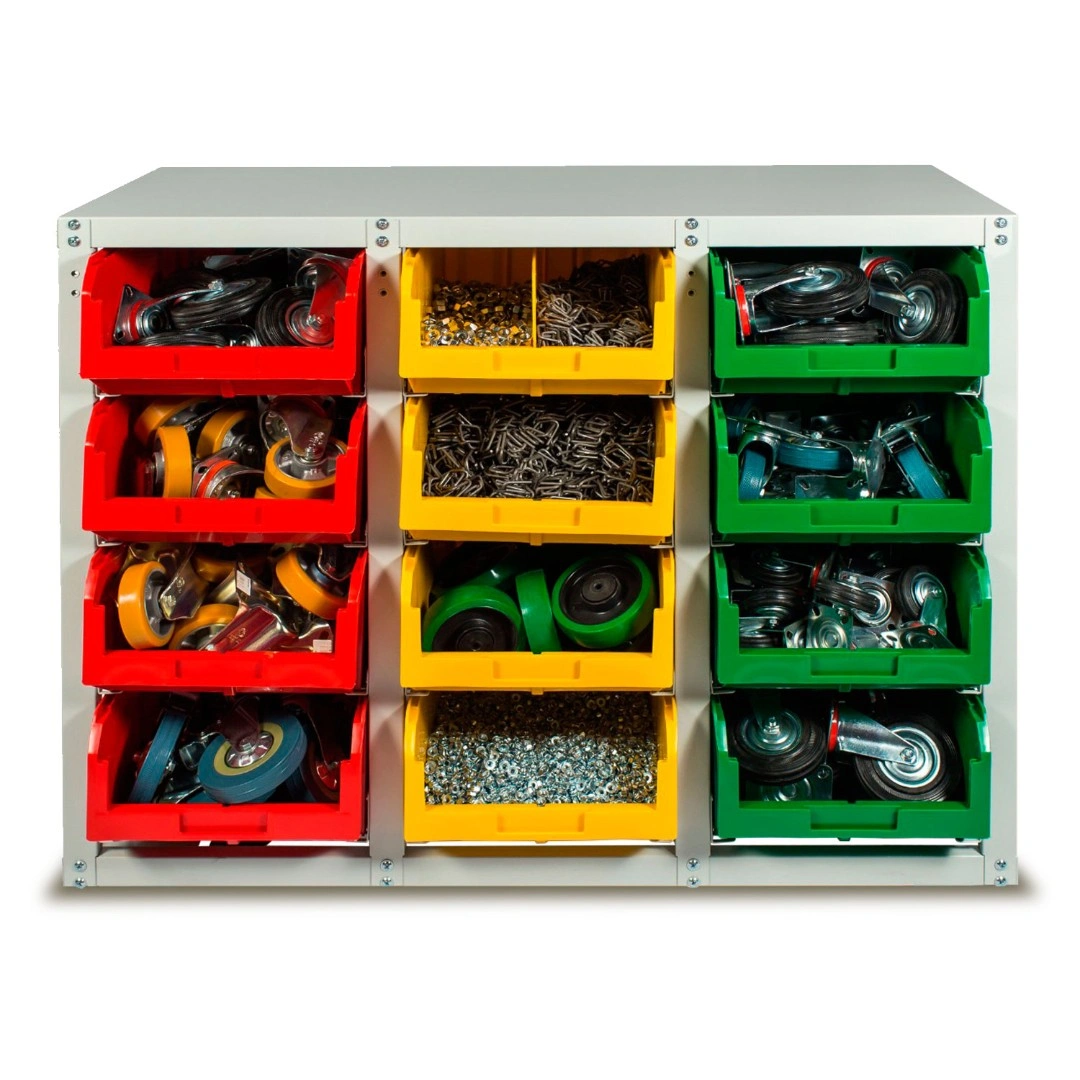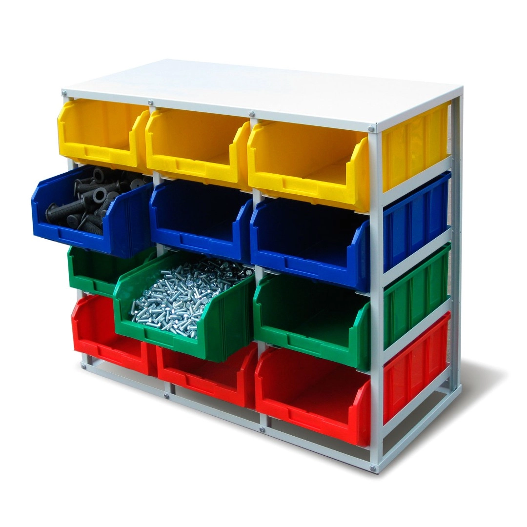 Стеллаж с направляющими односторонний V4-12 ячеек, грузоподъемность 480кг., предназначен для размещения контейнеров V-4 в отдельных ячейках на продольных направляющих. Подходит для эксплуатации в автомастерских, в строительных магазинах, на складах, где необходимо складирование мелкоштучных изделий и инструментов. Конструкция ящиков модели V4 обеспечивает быстрый и легкий доступ. Ящики открытого типа позволяют быстро находить нужные позиции, это возможно благодаря хорошему визуальному обзору содержимого. Конструкция стеллажа позволяет одним движением руки извлекать нужный ящик для его наполнения или опустошения, и так же легко устанавливать его на место. Стеллаж поставляется в разобранном виде и состоит из: металлического каркаса стеллажа с направляющими одностороннего V4-12 ячеек, ящиков пластиковых модель V-4 -12шт. Температурный режим эксплуатации от +20 до +70С.