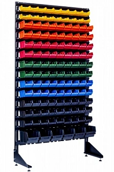 Стенд разработан специально для систематизации, хранения различных комплектующих, деталей, запчастей, крепежных и строительных материалов: болты, гайки, сверла, подшипники, метизы, фитинги, сантехника, зажимы, заклепки и т.д.