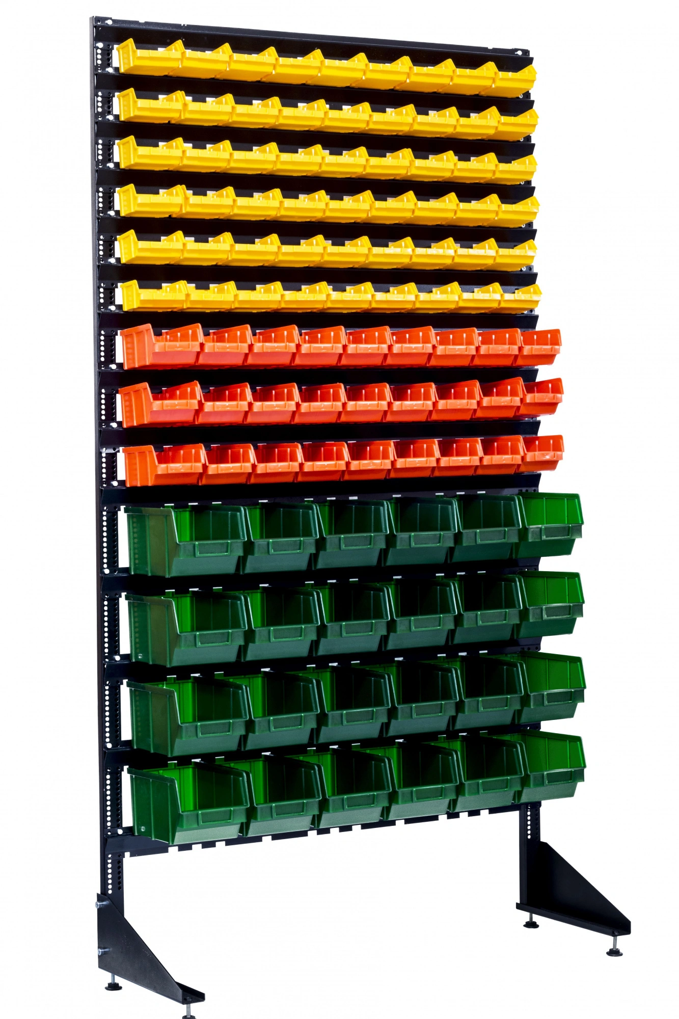 Стеллаж складской или торговый, применяется в разных отраслях. Витрина для вашего магазина, стеллаж для склада, удобный компактный стеллаж для гаража или мастерской. Вся мелкая продукция систематизирована.
