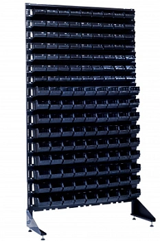 Складской и торговый универсальный стеллаж с пластиковыми контейнерами, предназначен для хранения, транспортировки различных мелких деталей, крепежных материалов. Применяется на производственных предприятиях, в складских помещениях, в магазинах розничной и оптовой торговли.