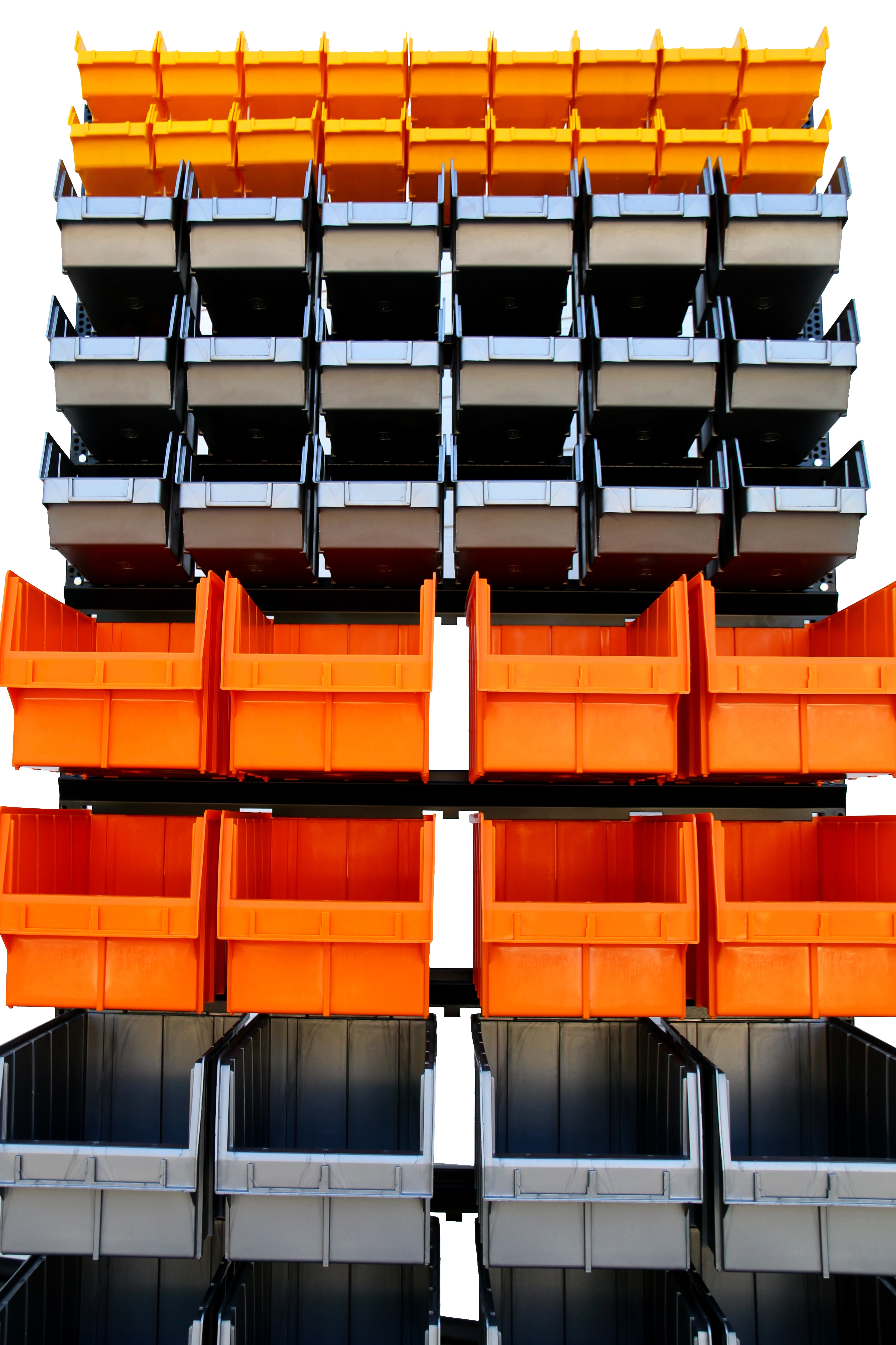 Цвета ящиков: оранжевый, желтый, красный, зеленый, синий, чёрный У ящика предусмотрен отсек для написания содержимого (место для шильдика), на передней скошенной стенке, захват, для быстрого съема со стеллажа, ребра жесткости на боковых стенках, сплошное дно. Материал - полипропилен.