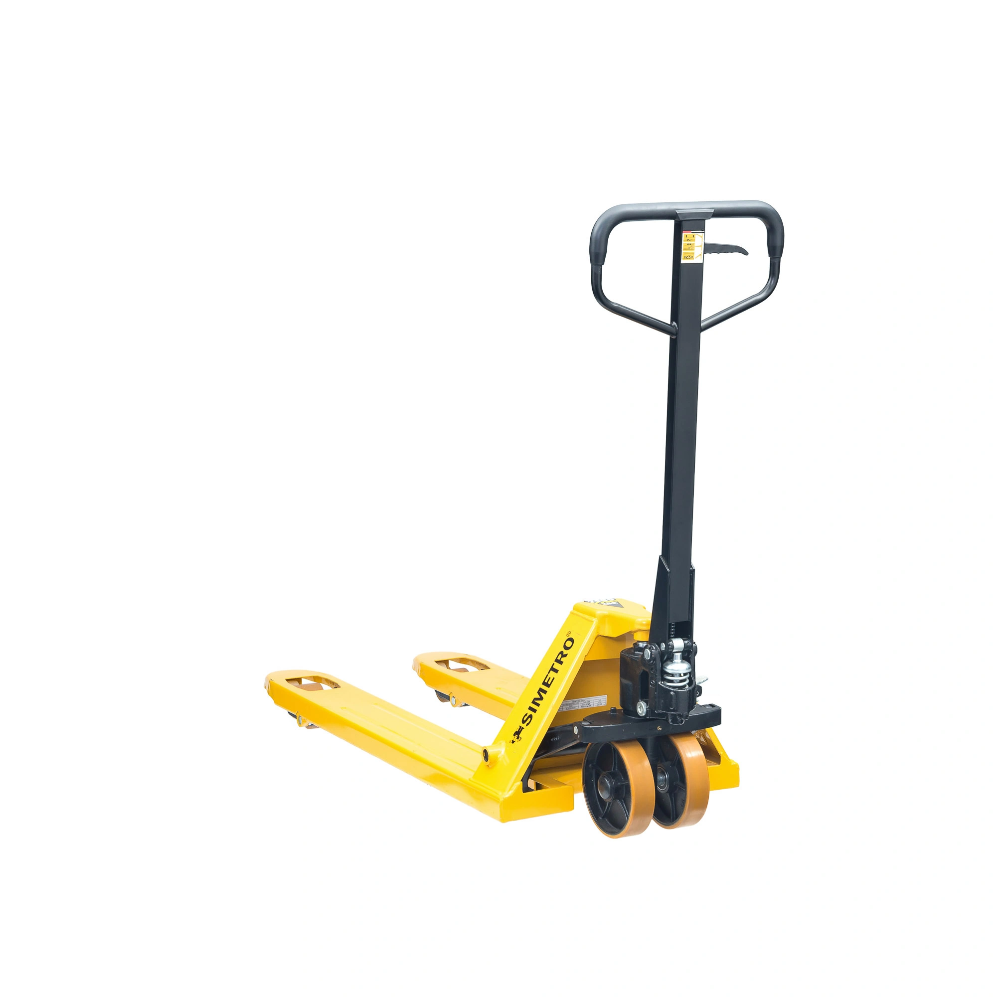 Тележка гидравлическая Simetro ТК-2500 предназначена для транспортировки грузов, упакованных на поддоны, паллеты, а также штучных товаров при необходимости. Удобная обрезиненная рукоятка обеспечивает легкое управление тележкой даже при низких температурах. Данная модель нашла свое применение в складских и производственных помещениях, а также на открытых площадках. Окрашенная конструкция не подвержена образованию коррозии при любых климатических условиях. Высота ручки 1200мм, грузоподъемность 2,5т., диаметр колес 200мм., высота подъема (max) 200мм., высота подъема (min) 85мм., длина вил 1150мм., общая длина 1550мм., диаметр колес 200мм. Преимущества: четкая работа гидравлической системы, хромированные опорные и соединительные втулки; обрезиненная рукоятка; размер колес 200х50мм.; размер роликов 80х70мм. Все вращающиеся узлы снабжены пресс-масленками.
